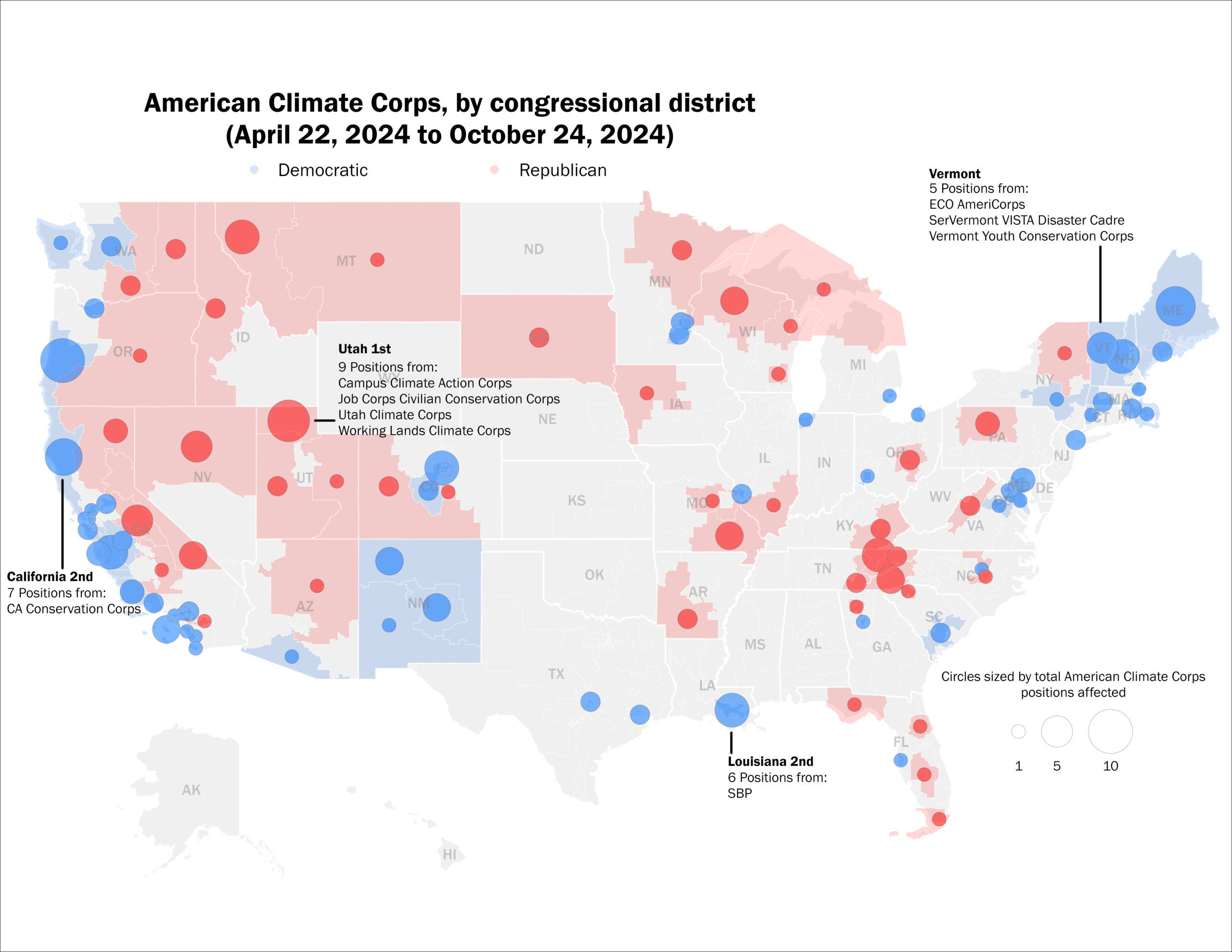 How do we visualize the loss of the American Climate Corps? This report maps out the reach of the American Climate Corps to understand where jobs and communities were most impacted when the program was shut down and funding was cut. Read the full report below.